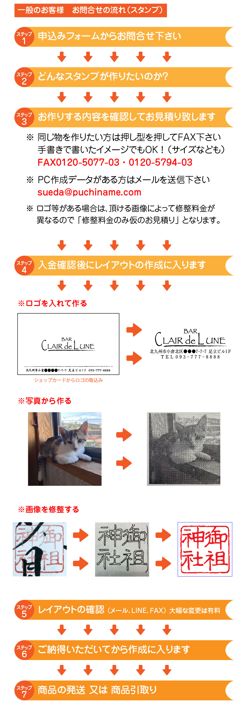 ご入稿方法など、詳細はお気軽にお問合せください。世界にひとつだけのゴム印が作れます。手書きで書いたものからスタンプが作成できます